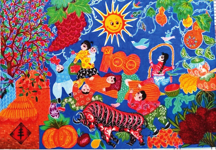 她們的作品,取材于農(nóng)村、農(nóng)業(yè)、農(nóng)民生活,或表現(xiàn)美好的生活場景,或反映豐收的喜悅,或體現(xiàn)鄉(xiāng)愁,在表現(xiàn)手法上采用大膽的夸張、變形,巧用艷麗的色彩,人物刻畫細(xì)致入微,內(nèi)心喜悅躍然紙上,富有鮮明的地方特色。綜觀她們的作品,無不展現(xiàn)了社會主義新農(nóng)村在新時(shí)代的新變化、新風(fēng)貌,在傳承和弘揚(yáng)代縣文化、引領(lǐng)社會主義精神文明建設(shè)方面做出了出色的嘗試與實(shí)踐。