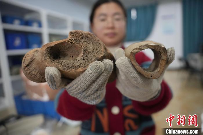 據(jù)中國(guó)人民大學(xué)歷史學(xué)院考古文博系從事科技考古研究的吳曉桐介紹,這次發(fā)現(xiàn)的牛、羊、馬、豬等動(dòng)物骨骼,很多有切割、打磨、鉆孔的加工痕跡,屬于骨器半成品,推測(cè)這些骨骼被用來(lái)制作骨器。