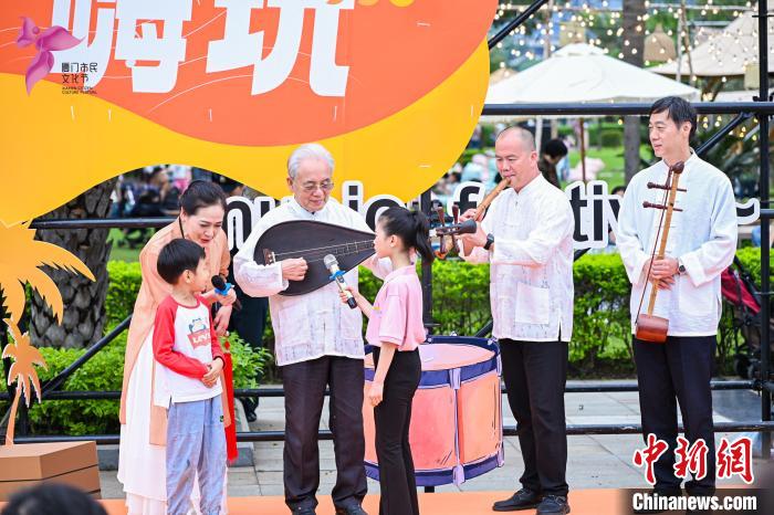 2024年5月,2024年廈門市民文化節(jié)上,卓圣翔(左三)與兒童觀眾互動(dòng)。(羅純禎 供圖)