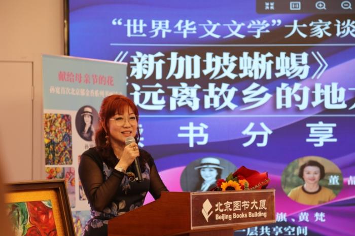 中新網(wǎng)5月12日電 5月11日,“世界華文文學(xué)”大家談讀書分享會(huì)在北京舉辦,藝術(shù)家孫寬攜新作《新加坡蜥蜴》亮相。