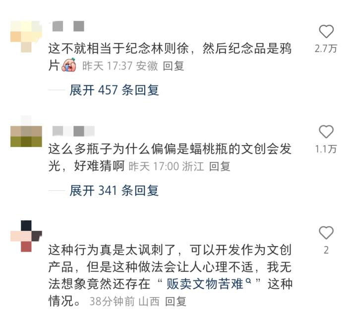 網(wǎng)友的評論,反映出公眾對該設(shè)計(jì)的強(qiáng)烈不適感。這款承載著“文物歸鄉(xiāng)”意義的文創(chuàng)產(chǎn)品,卻因設(shè)計(jì)細(xì)節(jié)被指“消費(fèi)歷史苦難”。