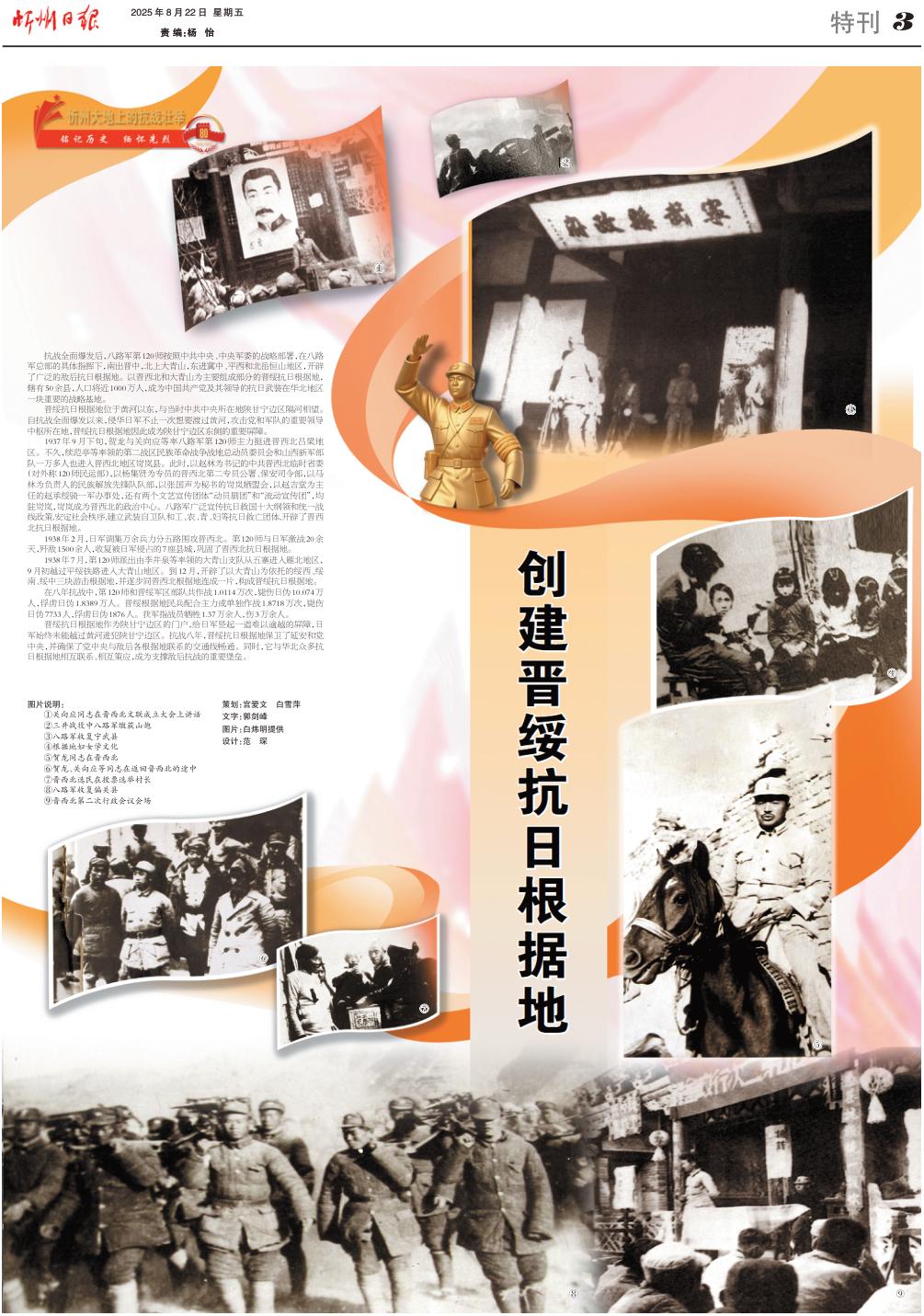 晉綏抗日根據(jù)地作為陜甘寧邊區(qū)的門戶,給日軍豎起一道難以逾越的屏障,日軍始終未能越過黃河進犯陜甘寧邊區(qū)??箲?zhàn)八年,晉綏抗日根據(jù)地保衛(wèi)了延安和黨中央,并確保了黨中央與敵后各根據(jù)地聯(lián)系的交通線暢通。同時,它與華北眾多抗日根據(jù)地相互聯(lián)系、相互策應(yīng),成為支撐敵后抗戰(zhàn)的重要堡壘。