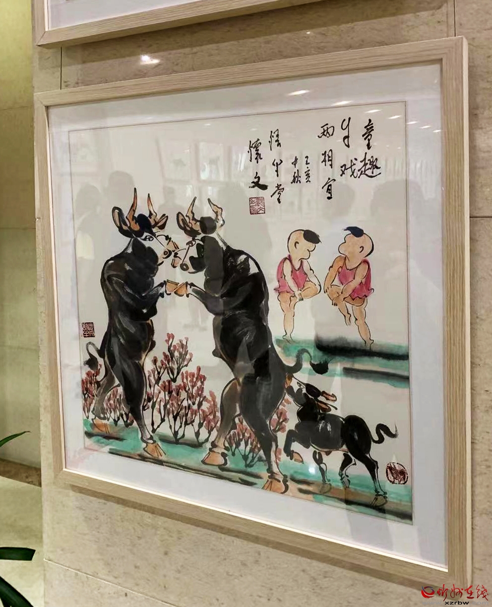 上千平方米的展廳內(nèi),299幅尺幅不同、姿態(tài)各異的以牛為表現(xiàn)主題的國(guó)畫作品,組成了一個(gè)牛的世界,多角度展現(xiàn)了牛的精神。