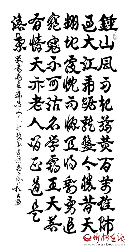 藝無(wú)止境,探索不停。程大凝在書(shū)法藝術(shù)中一直探索,尋求真藝。他學(xué)書(shū)臨帖,少則一兩次,多則上百次,不達(dá)精妙不罷休。程老說(shuō),各種字體都有魅力,但吸引人之處卻不盡相同:比如篆書(shū)象形對(duì)稱,使人賞心;隸書(shū)古樸厚重,使人悅目;楷書(shū)工整端莊,使人靜氣;行書(shū)流暢貫通,使人心曠;草書(shū)飛動(dòng)奔放,使人神怡。他的書(shū)法創(chuàng)作采用八面出鋒,橫畫(huà)豎入、豎畫(huà)橫入,加強(qiáng)筆畫(huà)的氣韻連貫,筆意相連。用他的話來(lái)說(shuō),就是用一根線就能把楷、行、草每個(gè)字都串起來(lái),以實(shí)現(xiàn)整體氣韻貫穿。