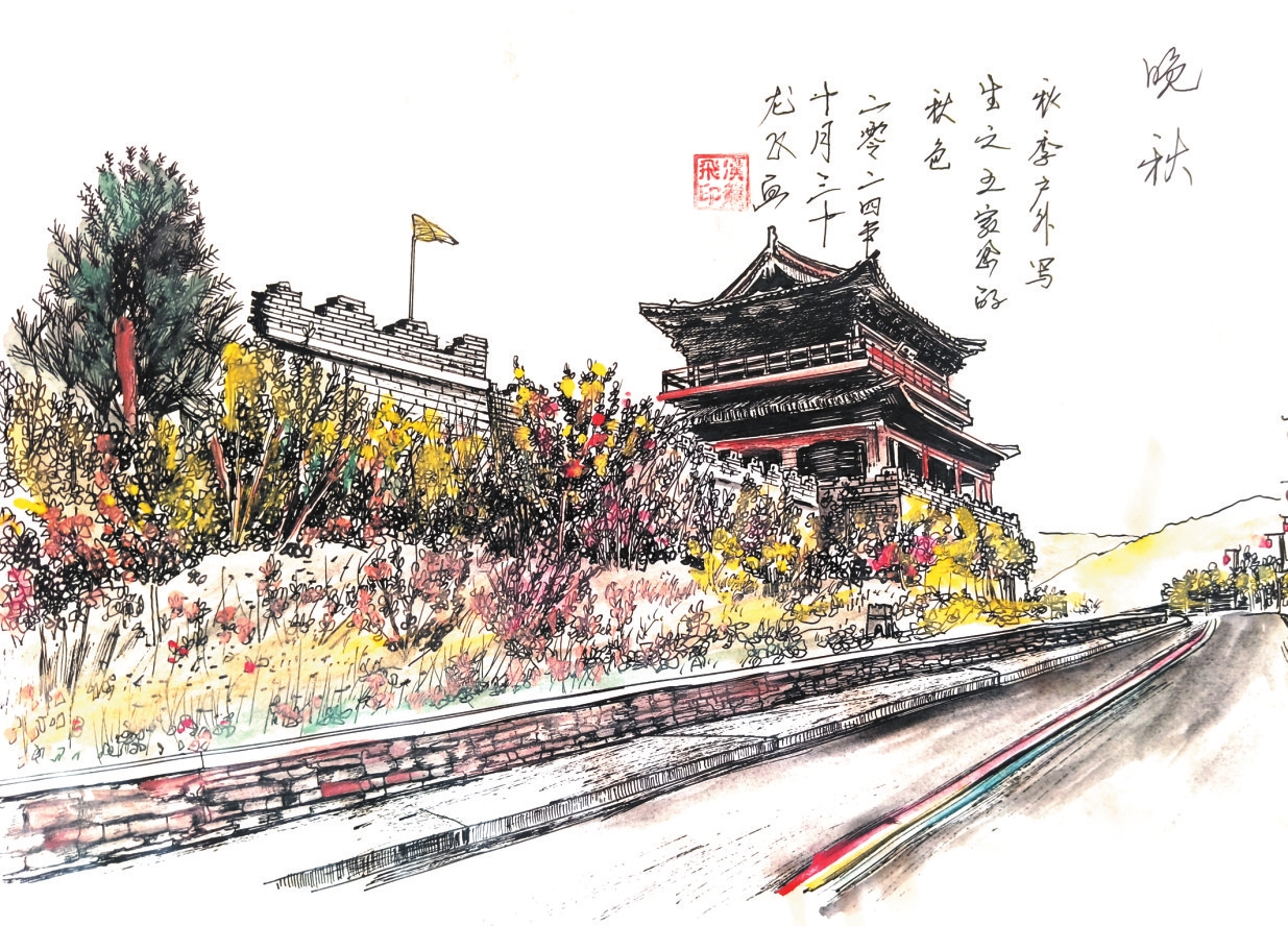 說起鋼筆畫來,侯龍飛滔滔不絕。鋼筆畫起源于歐洲,最初用于裝飾紋樣和插圖,后來逐漸發(fā)展成為一種獨立的藝術形式。近年來,隨著青年藝術家的加入,鋼筆畫在國內(nèi)煥發(fā)出新的生命力,展現(xiàn)了其在描繪人文自然和時代風貌方面的獨特魅力。藝術家們通過鋼筆畫記錄生活、表達情感,展現(xiàn)了這一藝術形式的多樣性和生命力。侯龍飛的創(chuàng)作不僅是對傳統(tǒng)技法的傳承,更是對新時代藝術表達的探索。