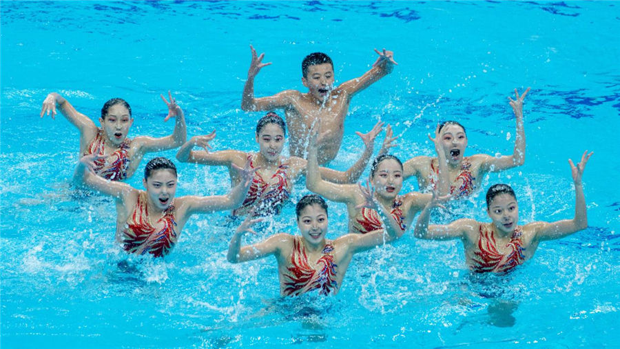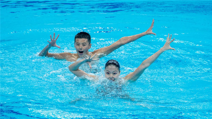 在巴黎奧運會上,男選手將被允許參加花游集體項目較量,每隊最多可以有兩名男選手。本屆冠軍賽也執(zhí)行了新規(guī)則,16歲的小將楊順誠是北京隊8名選手中唯一的男選手。北京隊隊長張嘉雯表示:“因為我們男孩也是第一次上集體(項目),有時候節(jié)奏會不穩(wěn)定,但我覺得男孩的加入能讓我們的團隊更有活力,讓我們的訓(xùn)練中充滿了歡樂,有時候會覺得很累的訓(xùn)練也變得輕松一些?!?/p>