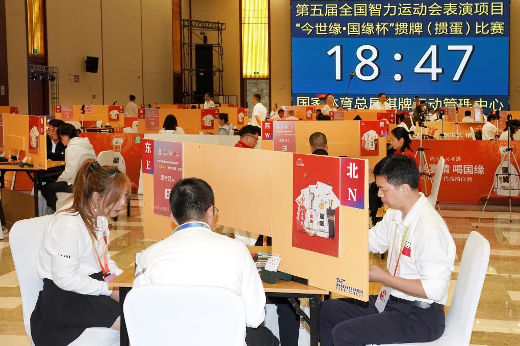 這是摜蛋項(xiàng)目首次進(jìn)入智運(yùn)會(huì),比賽設(shè)男子雙人賽、女子雙人賽、混合雙人賽3個(gè)競(jìng)賽項(xiàng)目,執(zhí)行國(guó)家體育總局棋牌運(yùn)動(dòng)管理中心審定的《競(jìng)技摜蛋競(jìng)賽規(guī)則(試行)》,分預(yù)賽、決賽兩個(gè)階段進(jìn)行。預(yù)賽采用場(chǎng)分制瑞士積分編排賽,進(jìn)行7輪比賽,決賽采用豪威爾制,進(jìn)行9輪比賽。比賽均采用計(jì)算機(jī)預(yù)制比賽用牌,全場(chǎng)同牌,以得分決定名次。