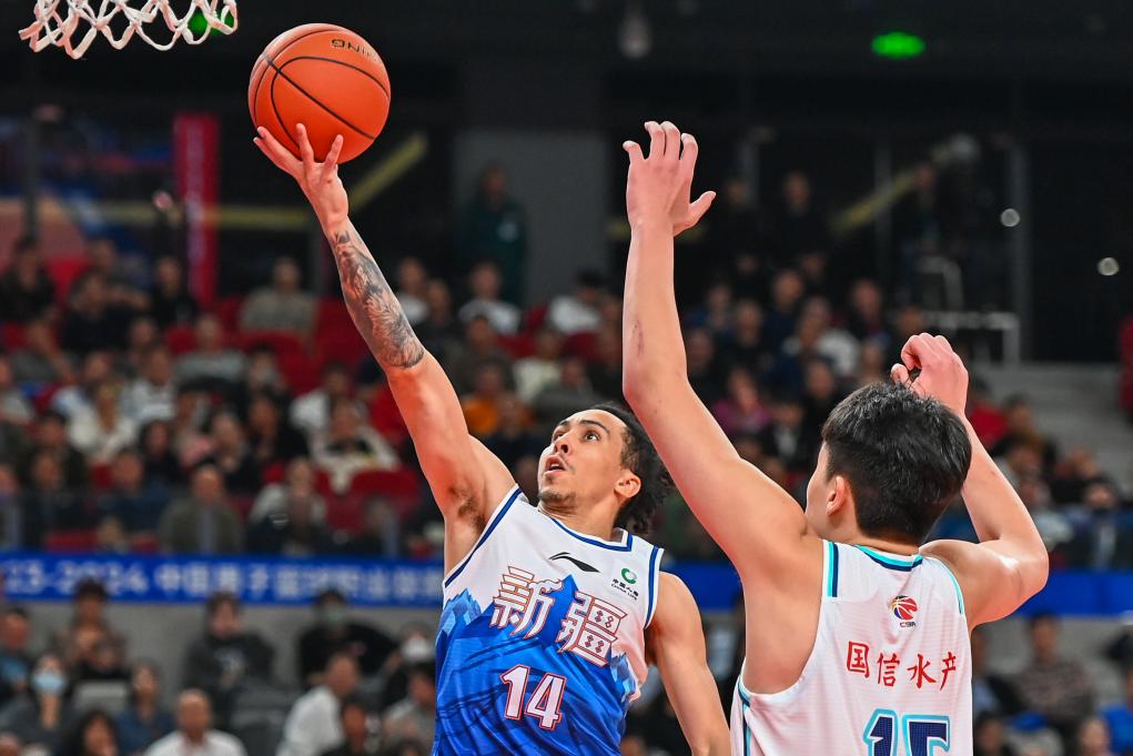 10月31日,新疆伊力特隊(duì)球員齊麟(右)在比賽中進(jìn)攻。新華社記者 丁磊 攝