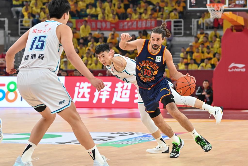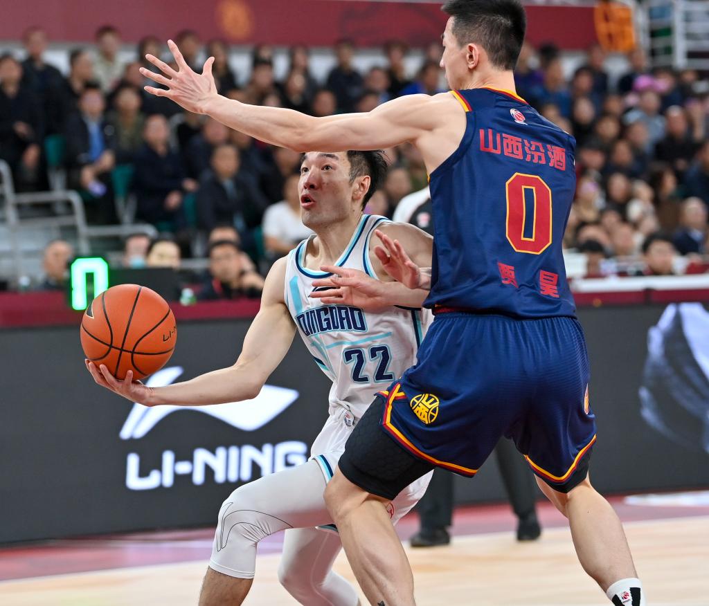 11月9日,青島隊(duì)球員王洪(左)在比賽中突破。新華社記者 楊晨光 攝