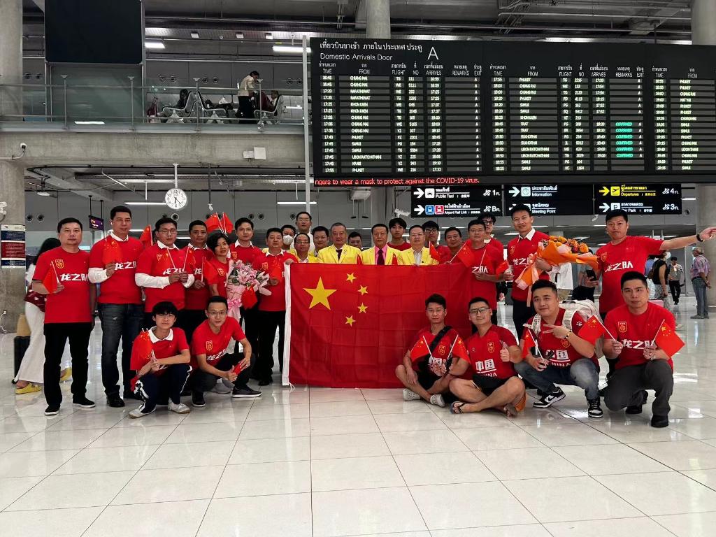 中國球迷在泰國機場準備迎接國足抵達。