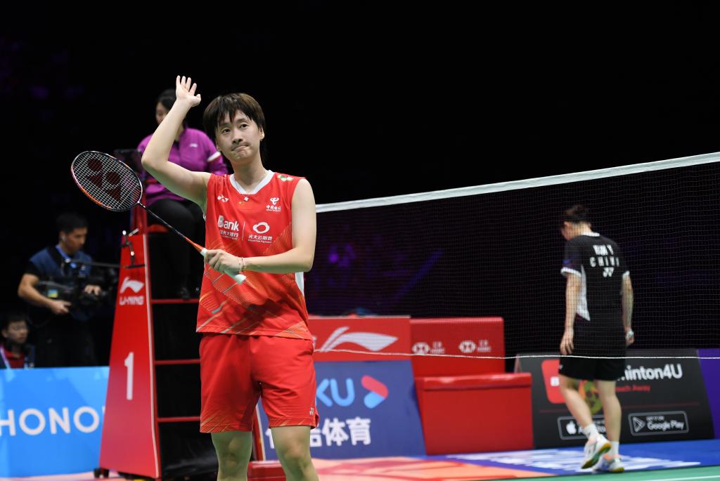 11月26日,陳雨菲(左)在中國羽毛球大師賽女子單打決賽中獲勝后慶祝。新華社記者 毛思倩 攝