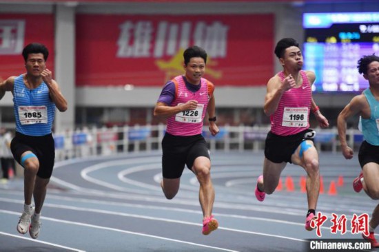 當(dāng)日17時25分舉行的男子60米決賽中,蘇炳添與陳冠鋒同組。陳冠鋒以6秒65的成績率先撞線,蘇炳添以6秒66收獲亞軍。