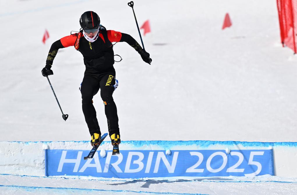 圖為張成浩在哈爾濱亞冬會滑雪登山比賽中。新華社記者 謝劍飛 攝