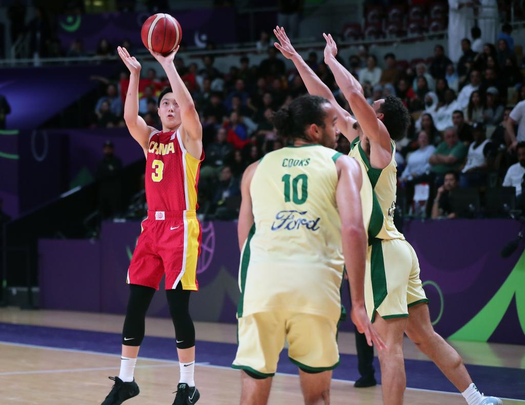 決賽一開始,胡金秋快攻上籃得手,開啟中國隊的得分。澳大利亞隊迅速還以一記三分,隨后雙方比分交替上升。首節(jié)倒數(shù)第三分鐘,胡明軒內(nèi)外線連續(xù)得分幫助中國隊拉開分差,同時憑借在罰球線上的穩(wěn)定發(fā)揮,中國隊以25:17結束首節(jié)。