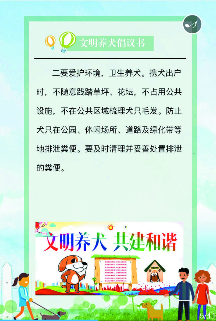 在宣傳活動中,民警深入街道、小區(qū)、商鋪等人員密集場所,在宣傳欄懸掛文明養(yǎng)犬宣傳標(biāo)語、張貼文明養(yǎng)犬倡議書等宣傳資料,向轄區(qū)居民詳細(xì)講解《忻州市養(yǎng)犬管理條例》《文明養(yǎng)犬公告》的具體內(nèi)容,引導(dǎo)養(yǎng)犬群眾主動辦理養(yǎng)犬登記證、出門為犬只佩戴犬牌、定期為犬只注射疫苗,做到依法養(yǎng)犬、文明養(yǎng)犬、衛(wèi)生養(yǎng)犬、健康養(yǎng)犬、安全養(yǎng)犬。活動中,該局共懸掛宣傳標(biāo)語50條,張貼文明養(yǎng)犬倡議書500份,向群眾發(fā)放宣傳資料3500人/份。