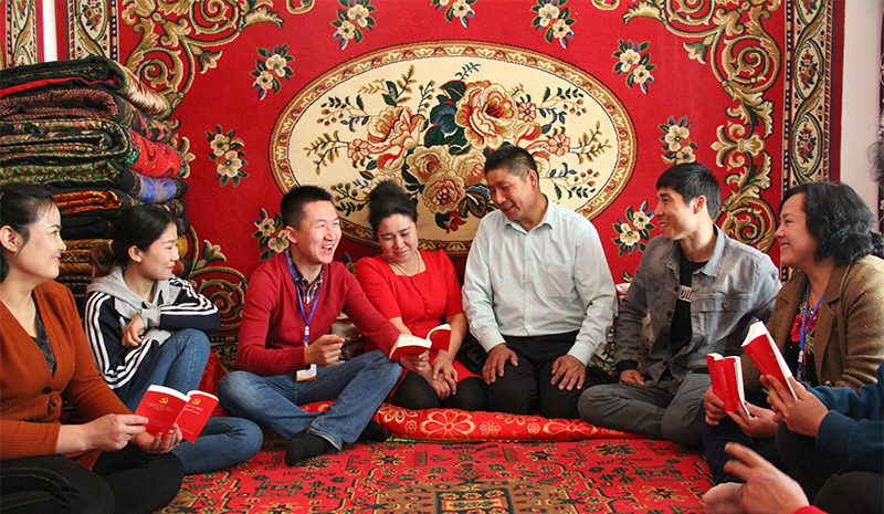 △達(dá)西村村民在聆聽(tīng)駐村工作隊(duì)隊(duì)員宣講黨的好政策。