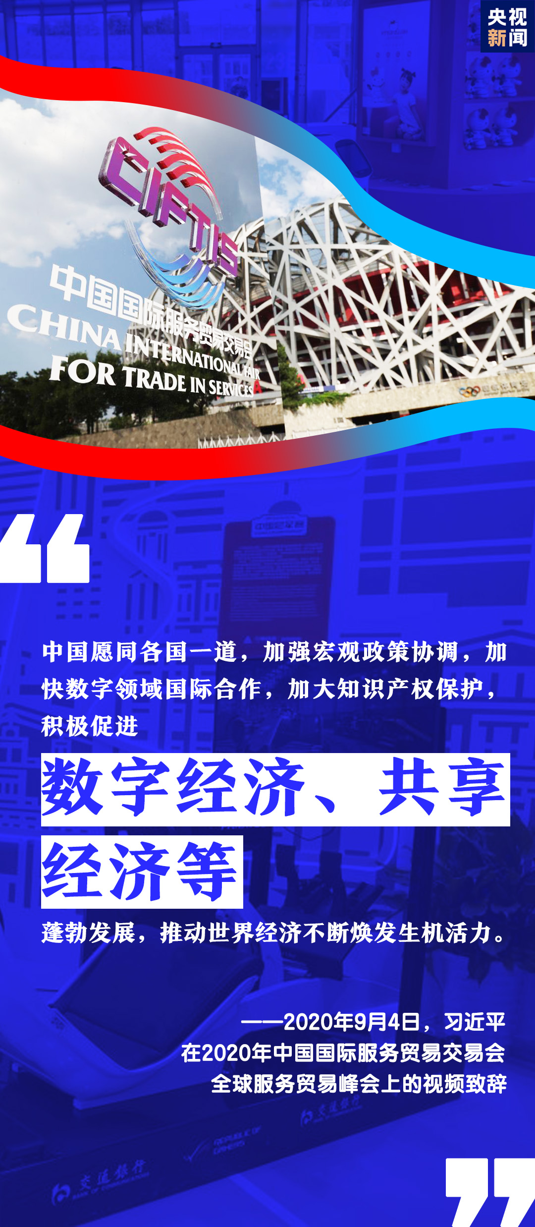 9月4日,2020年中國國際服務(wù)貿(mào)易交易會(huì)全球服務(wù)貿(mào)易峰會(huì)在北京開幕。習(xí)近平主席通過視頻方式在峰會(huì)上致辭。