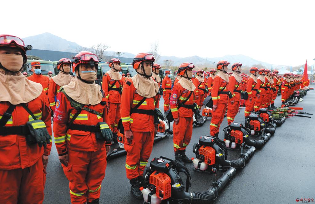 為提升森林草原防滅火能力,推進森林消防救援力量融合化訓練,保障火險期森林草原安全,近日,五臺縣組織開展森林草原防滅火實戰(zhàn)演練。圖為實戰(zhàn)演練現(xiàn)場。(記者 范 濤攝)