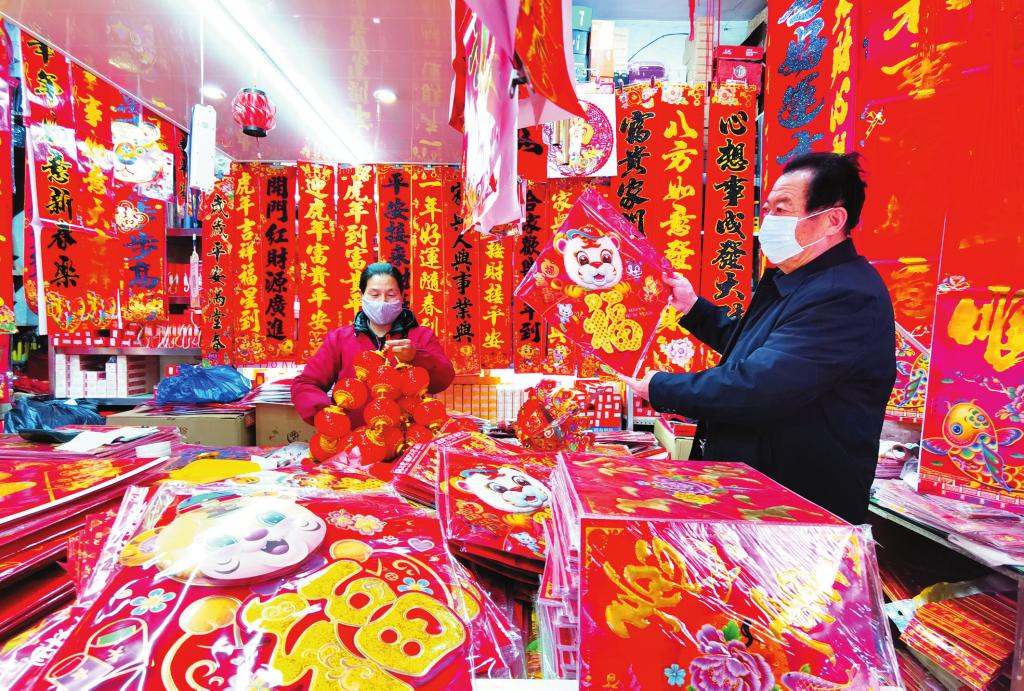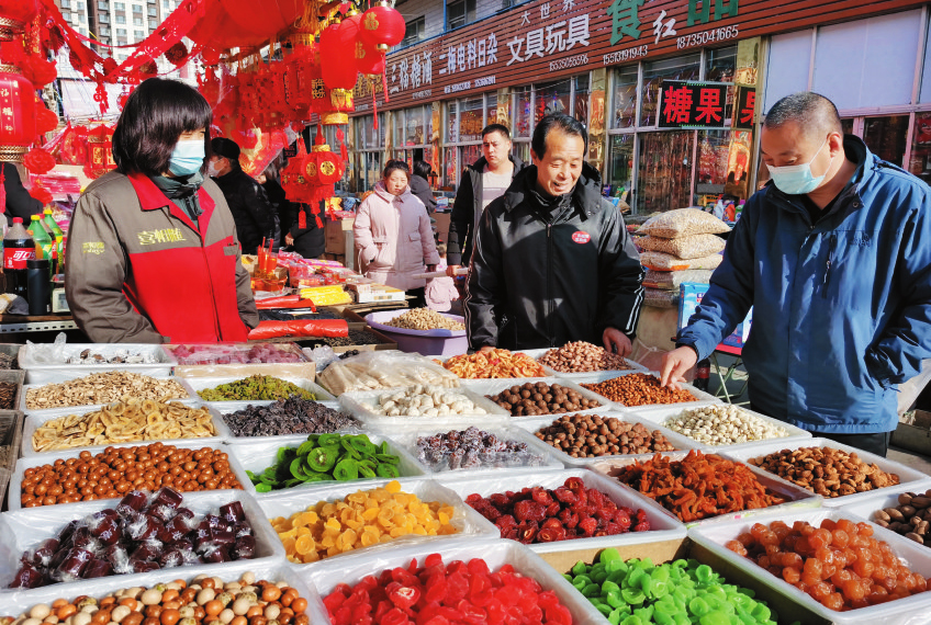 市場(chǎng)內(nèi)各種商品琳瑯滿目,讓人目不暇接。煙酒糖茶、禽、蛋、蔬菜、辦公用品、生活用品,應(yīng)有盡有。一位商戶說(shuō):最近受疫情和網(wǎng)購(gòu)的影響,生意沒(méi)有以前好做了,但市民購(gòu)買熱情依然高漲,進(jìn)入臘月以來(lái),生意一天比一天好了起來(lái)。據(jù)了解,市場(chǎng)內(nèi)各商戶認(rèn)真做好疫情防控工作,及時(shí)對(duì)場(chǎng)地進(jìn)行消殺,努力營(yíng)造一個(gè)安全祥和的購(gòu)物環(huán)境。市場(chǎng)上到處充滿著年味,尤其是紅彤彤的春聯(lián)和喜氣洋洋的福字最為搶眼。(王國(guó)棟 攝影報(bào)道)