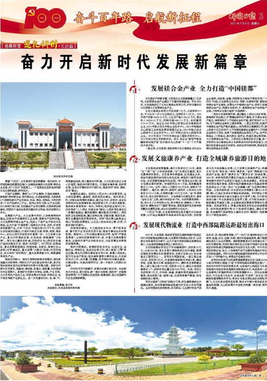 發(fā)展新興產(chǎn)業(yè)。大力發(fā)展中藥材、小雜糧等特色種植業(yè);加快農(nóng)產(chǎn)品精深加工業(yè)發(fā)展,提高農(nóng)產(chǎn)品附加值。大力發(fā)展特種鎂合金產(chǎn)業(yè),促成上下游產(chǎn)業(yè)盡快在五臺落地,全力打造“中國鎂都”;培育壯大風電、光伏、水電等綠色能源產(chǎn)業(yè),力爭“十四五”時期達到200萬千瓦;加快五臺陸港項目建設,打造忻州地區(qū)交通、物流、商貿(mào)、服務中心,成為山西外向型經(jīng)濟的重要一環(huán)。大力發(fā)展文旅產(chǎn)業(yè),重點打好清涼宜居、紅色旅游、佛教建筑“三張牌”。借五臺山整治的機遇,加快把五臺山附近的鄉(xiāng)鎮(zhèn)打造成功能互補區(qū)、服務“后花園”。對門限石、駝梁地區(qū),重點發(fā)展度假酒店、民宿體驗、農(nóng)家樂,承接五臺山游客;對靈境地區(qū),重點發(fā)展“大朝臺”線路;對豆村地區(qū),充分依托“亞洲佛光”,重點發(fā)展佛教文化、佛教建筑等相關產(chǎn)業(yè)。