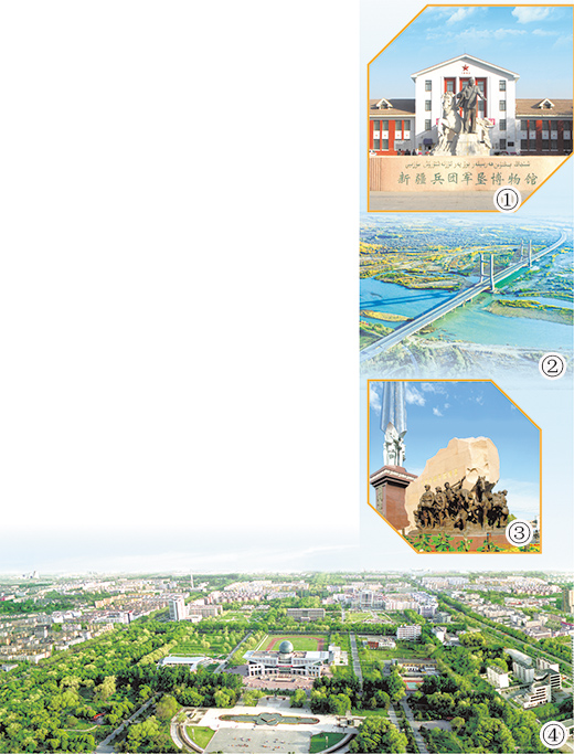 石河子市被譽為“共和國軍墾第一城”。第一代老軍墾陸振歐回憶當時的情景,仍記憶猶新:“那時只有車馬店、賣馕的幾戶人家,除了北面蘆葦?shù)兀教幨腔臑└瓯??!钡谝淮鴪F人喝鹽堿水、睡“地窩子”,人拉肩扛、挖渠引水、改造葦湖、開墾荒地,在荒無人煙的大漠之邊打造了一座現(xiàn)代化新城。如今,石河子市碧水繞城、綠意盎然、鳥語花香,綠蔭掩映座座現(xiàn)代化廠房。石河子崛起為新疆重要工業(yè)基地,享有“戈壁明珠”的美名。“石河子從一張白紙起家,發(fā)展到現(xiàn)在,靠的就是兵團人艱苦奮斗、開拓創(chuàng)新的精神?!标懻駳W感慨地說。