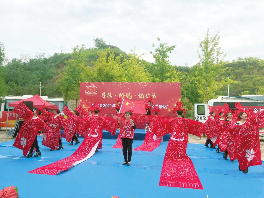 國慶假期,“尋根·鑄魂·悅生活”暨永和縣“歡度國慶、暢游乾坤”主題文旅活動在黃河蛇曲國家地質(zhì)公園舉辦。當(dāng)?shù)胤沁z傳承人劉林翠帶來的剪紙秀《五星紅旗》用別樣的方式贊美祖國,表達對社會主義和諧富裕新生活的熱愛。張婷 王偉攝