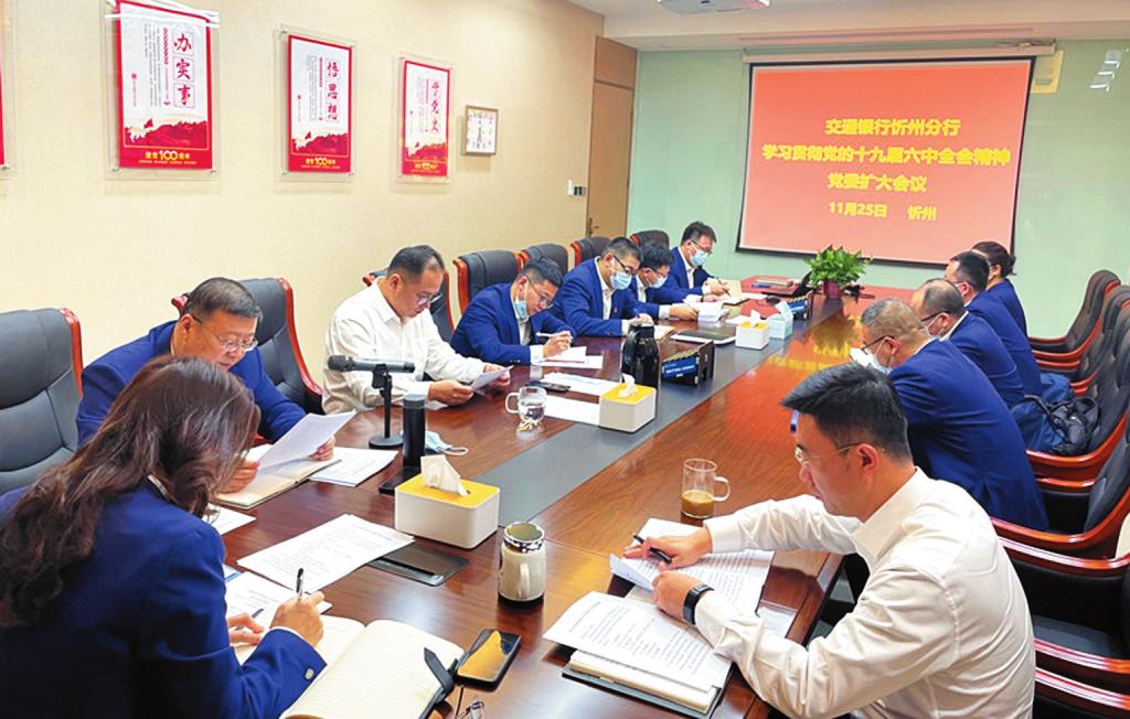 11月25日,交通銀行忻州分行召開黨委擴大會議,傳達學(xué)習(xí)貫徹黨的十九屆六中全會精神,全會精神在交行忻州分行引起熱烈反響,廣大干部員工迅速掀起學(xué)習(xí)貫徹全會精神熱潮。