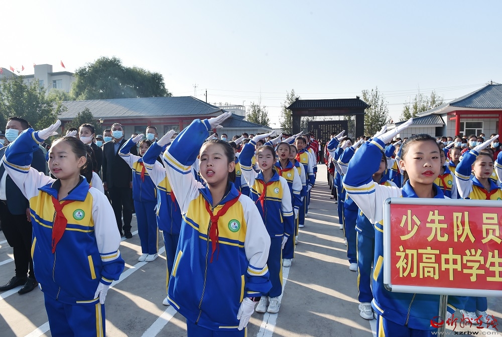 少先隊員合唱《我們是共產(chǎn)主義接班人》。馮曉磊 攝