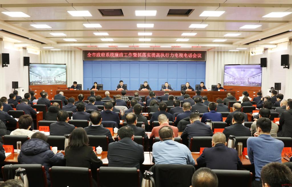 本報訊 (記者任逢春)2月22日,全市政府系統(tǒng)廉政工作暨抓落實提高執(zhí)行力會議召開,深入學(xué)習(xí)貫徹習(xí)近平總書記關(guān)于黨的自我革命的重要思想,全面貫徹黨中央國務(wù)院、省委省政府、省紀委和市委的系列會議安排,對縱深推進政府系統(tǒng)黨風(fēng)廉政建設(shè)和反腐敗斗爭工作進行安排部署,號召全市政府系統(tǒng)振奮精神、擔(dān)當作為,全面提升重實干、強執(zhí)行、抓落實的實踐成效,不斷開創(chuàng)全市高質(zhì)量發(fā)展、全方位轉(zhuǎn)型和現(xiàn)代化建設(shè)新局面。市委副書記、市長李建國出席會議并講話。市委常委、常務(wù)副市長趙新年主持會議。市委常委、市紀委書記、市監(jiān)委代主任王建江,副市長史紅波、賈玲香、王建峰、李碩,市政府秘書長張艮生出席。
