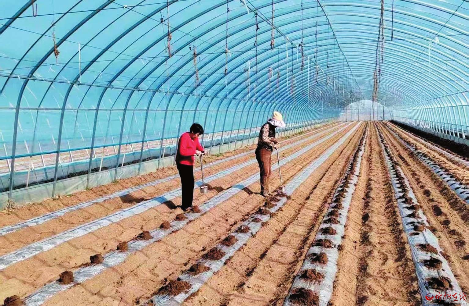 陽春三月,春風(fēng)拂過雙乳山,西大王村的豆角產(chǎn)業(yè)園迎來豆角種植好時機。大棚里,六七個工人有序作業(yè),有的在點坑穴,有的在撒種、填土。一個大棚種好后,打開閥門,水流順著地上的滴管涌到坑穴,為剛?cè)鱿碌姆N子提供水分。據(jù)了解,西大王村采用“黨支部+集體經(jīng)濟合作社+農(nóng)戶”的發(fā)展模式,既為集體增收,又讓村民受益。今年,豆角種植園區(qū)一共有13個大棚,占地約40畝。為了搶抓農(nóng)時,提前上市,賣個好價格,此次播種雇了許多村民幫忙,播種大約需要半個月時間才能完成。