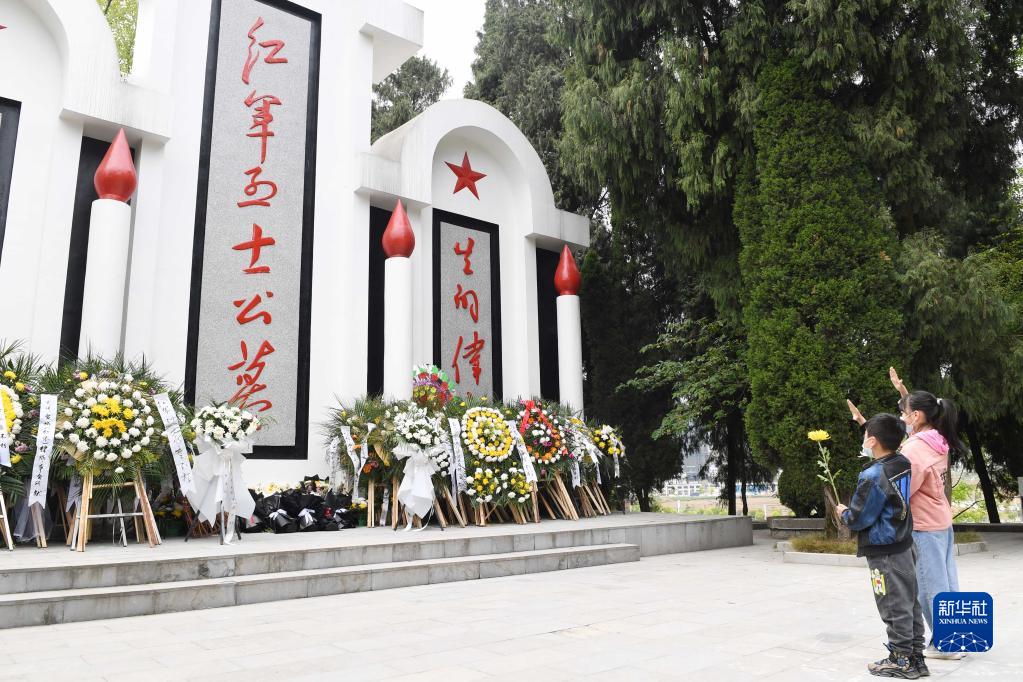 4月4日,貴州省仁懷市魯班紅軍烈士陵園紅軍烈士墓前,兩名小朋友向烈士敬少先隊(duì)隊(duì)禮。