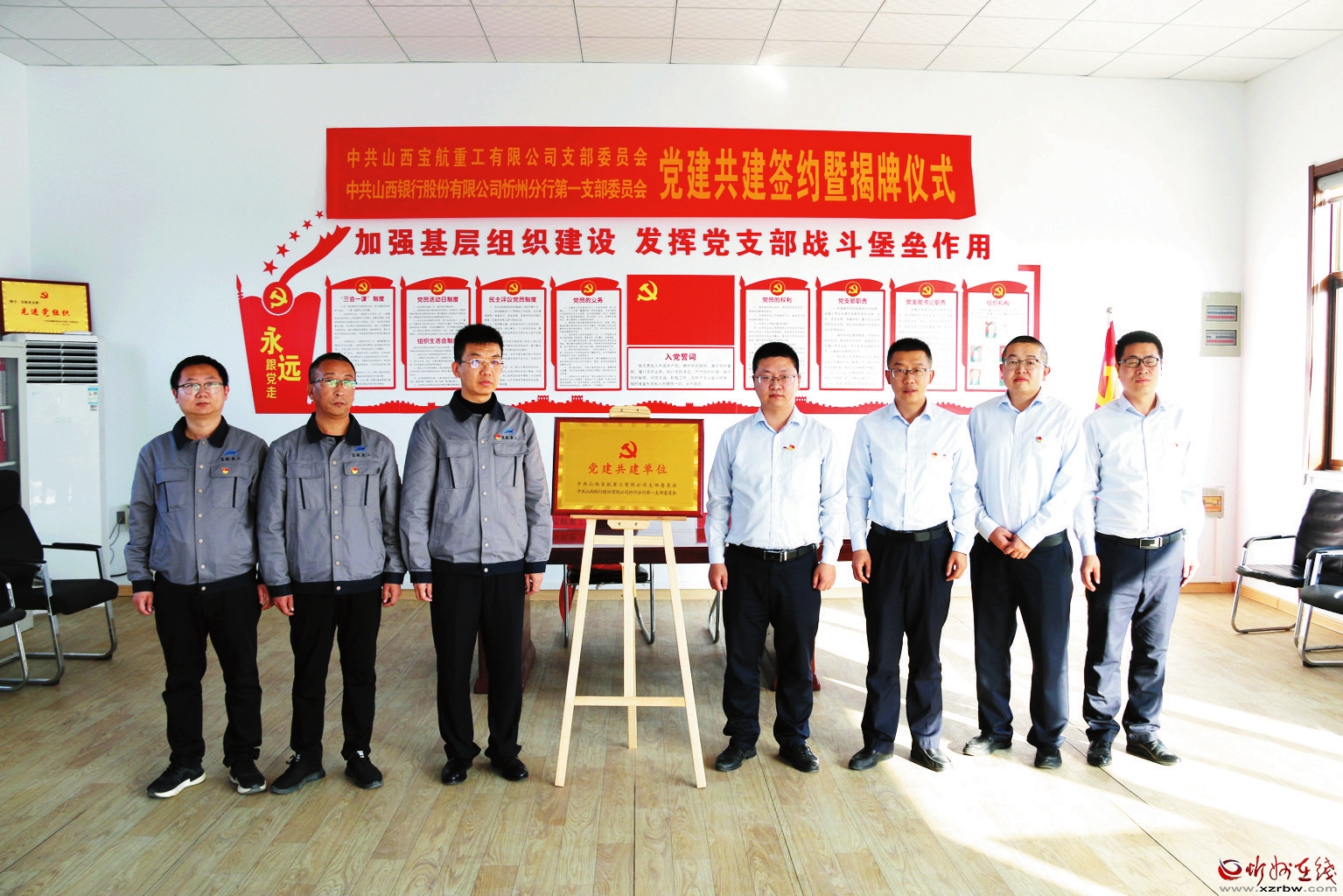 山西銀行忻州分行第一黨支部負責(zé)人、山西寶航重工有限公司負責(zé)人共同為“黨建共建單位”揭牌,共同簽署了黨建共建協(xié)議。