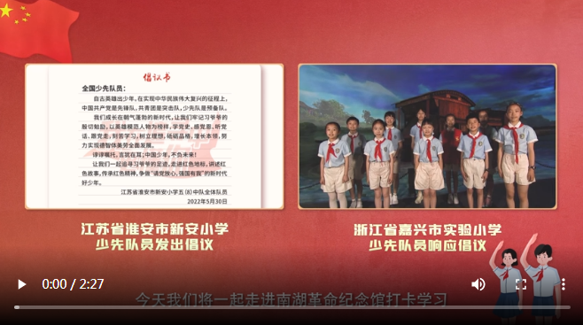 現(xiàn)代快報(bào)訊(記者 于露 王新月)2022年5月30日,是江蘇省淮安市新安小學(xué)少先隊(duì)員們收到習(xí)近平總書(shū)記回信一周年的日子。近日,他們向全國(guó)少先隊(duì)員發(fā)出“跟著習(xí)爺爺?shù)淖阚E學(xué)黨史”的倡議。浙江省嘉興市實(shí)驗(yàn)小學(xué)的少先隊(duì)員們第一時(shí)間響應(yīng)倡議,追尋習(xí)爺爺?shù)淖阚E,打卡南湖革命紀(jì)念館,講述紅色故事,傳承紅色精神。