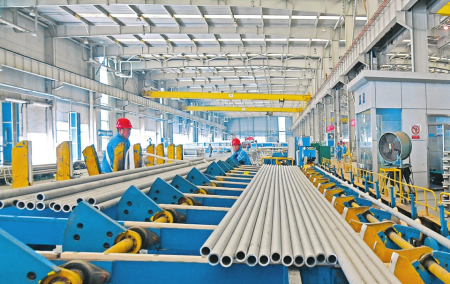 巨大的生產(chǎn)車間內(nèi),機(jī)器轟鳴,一根根坯料經(jīng)過穿孔、酸洗、拋光、冷軋等近40道工序,變成锃亮堅(jiān)固的不銹鋼管,發(fā)往國內(nèi)外企業(yè),成為電站、鐵路、新能源、油氣開采等行業(yè)的重要材料。在山西太鋼不銹鋼鋼管有限公司,一系列特色管材產(chǎn)品實(shí)現(xiàn)了在重大裝備上的突破性應(yīng)用,提高了太鋼鋼管產(chǎn)品的美譽(yù)度和競爭力。