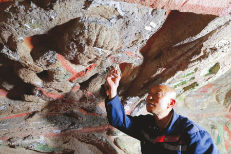 云岡研究院文保修復(fù)人員正在對(duì)受損文物進(jìn)行修復(fù)。趙文貴攝