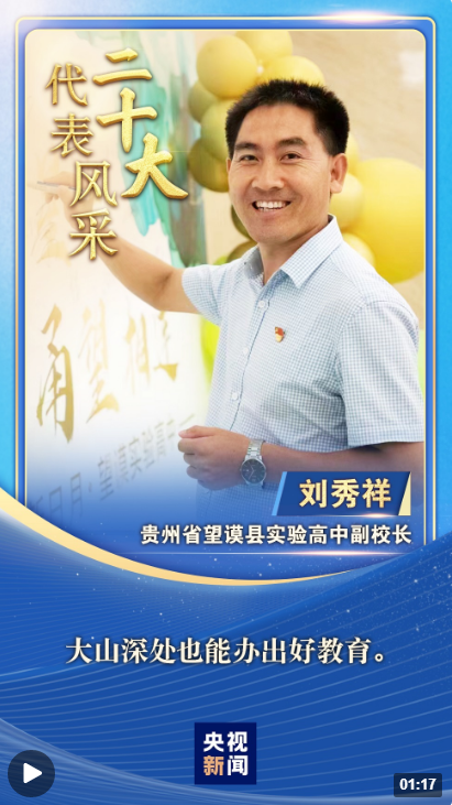 “二十大代表風采”一起來認識貴州省黔西南州望謨縣實驗高中副校長劉秀祥。
