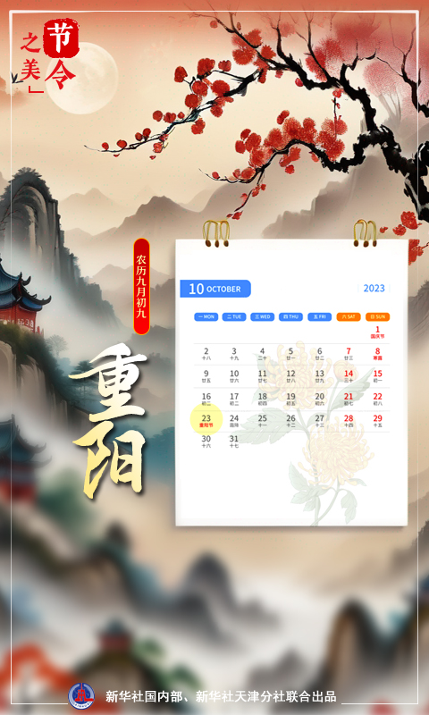 新華社天津10月22日電(記者周潤?。熬湃拯S花酒,登高會昔聞?!?0月23日,農歷九月初九,重陽節(jié)。歲歲重陽,今又重陽。農歷九月初九緣何是重陽?其中蘊含著怎樣的“數(shù)字密碼”?