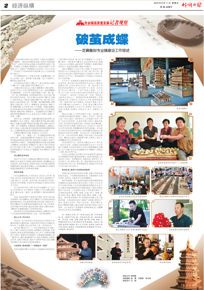 忻州梯級培育6個市級專業(yè)鎮(zhèn),定襄雕刻榜上有名,全市惟一的“一縣雙鎮(zhèn)”花落定襄。法蘭眾望所歸,雕刻何以雀屏中選?