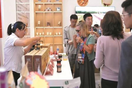 羊肥小米、有機(jī)藜麥、老陳醋……在農(nóng)交會(huì)的“有機(jī)旱作·晉品”展區(qū),琳瑯滿目的山西特色農(nóng)產(chǎn)品,吸引了眾多參展商和消費(fèi)者。