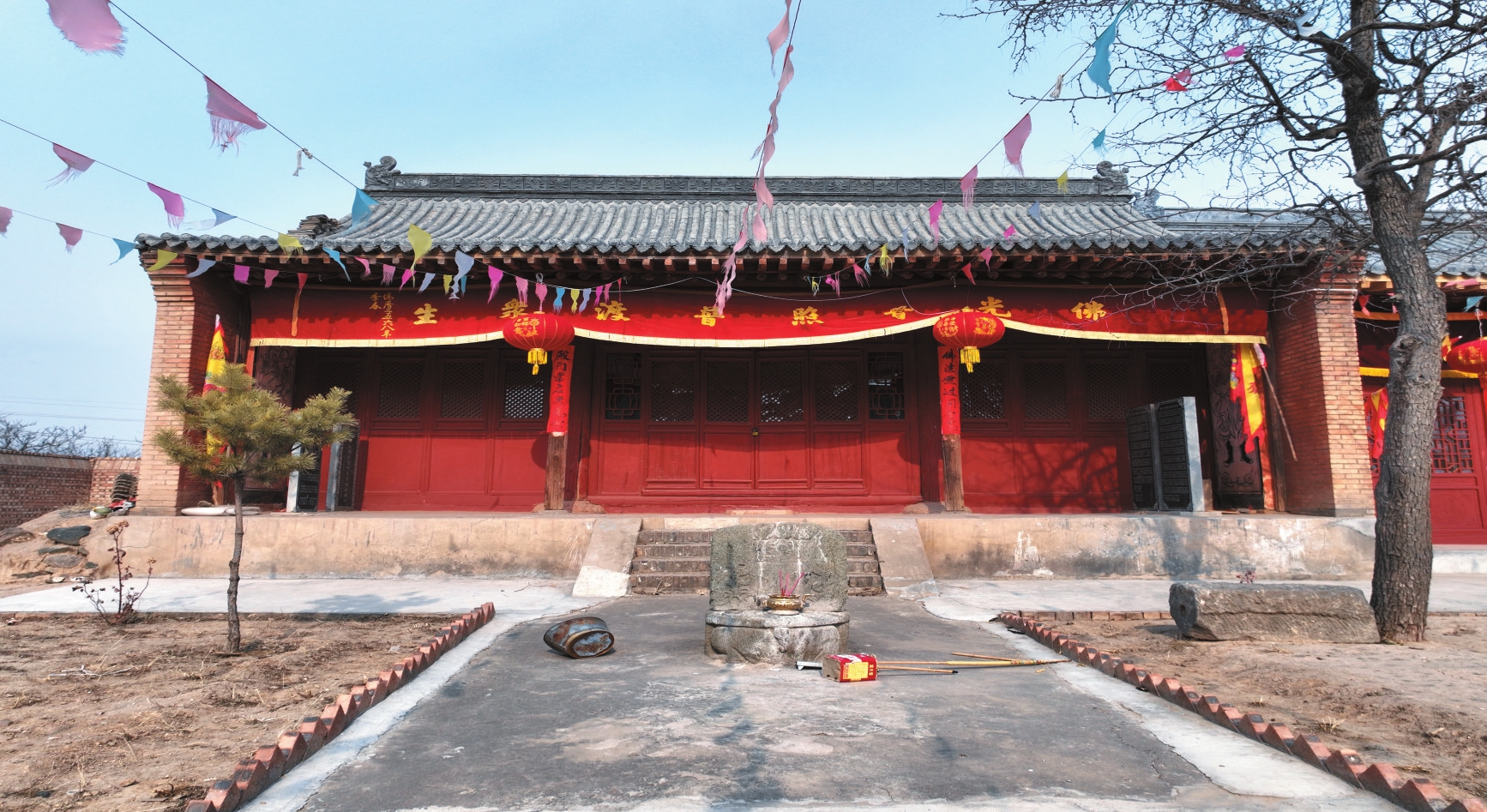 嘉圣寺位于代縣棗林鎮(zhèn)顯旺村北,創(chuàng)建年代不詳。據(jù)過殿題記載,明正德十六年(1521)重修。該寺坐北朝南,占地面積3295平方米,三進(jìn)院落布局,中軸線上依次建有戲臺、過殿和正殿,兩側(cè)為東西配殿。過殿和正殿為明代建筑,其余皆為清代遺構(gòu)。過殿為石砌臺基,基寬11.2米、深9.3米、高1.3米,面寬三間,進(jìn)深四椽,單檐懸山頂,五檁無廊式構(gòu)架,裝修已毀。正殿為石砌臺基,基寬11.3米、深9米、高0.9米,面寬三間,進(jìn)深五椽,單檐硬山頂,六檁前廊式構(gòu)架,前檐明間和次間施四扇六抹格扇門。
