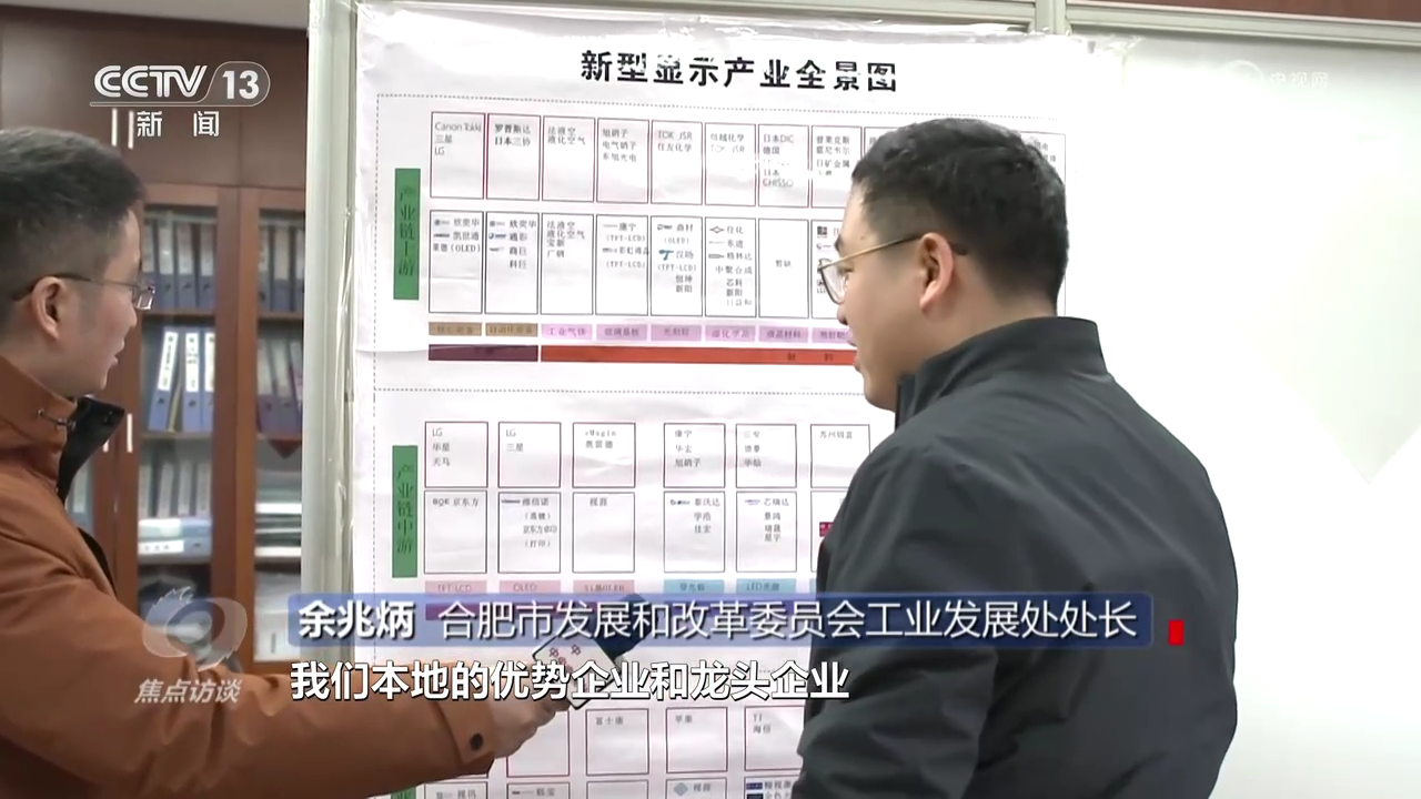 合肥市發(fā)展和改革委員會工業(yè)發(fā)展處處長余兆炳:“新型顯示產(chǎn)業(yè)全景圖上面顯示了合肥市發(fā)展新型顯示的產(chǎn)業(yè)鏈的上游、中游、下游本地的優(yōu)勢企業(yè)和龍頭企業(yè),有這個全景圖,我們對標作戰(zhàn)、掛圖作戰(zhàn)非??梢暬鲬?zhàn)。”