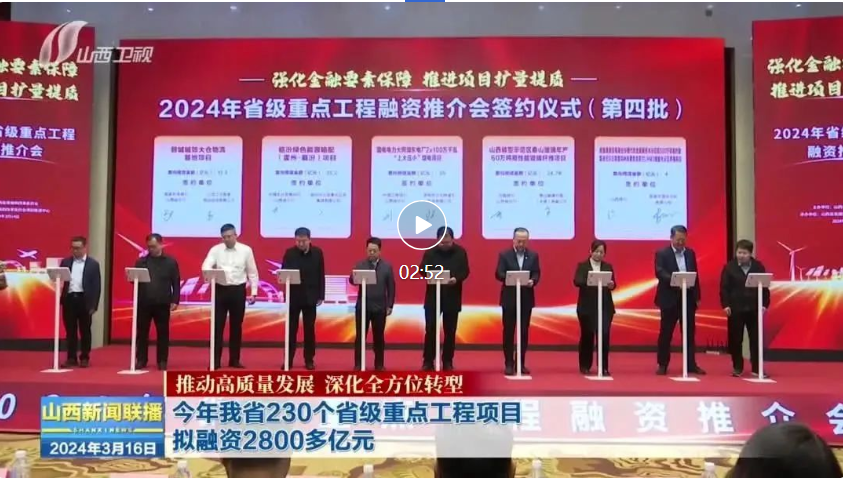 今年全國兩會(huì),《政府工作報(bào)告》明確提出“積極擴(kuò)大有效投資”。3月14日,“強(qiáng)化金融要素保障 推進(jìn)項(xiàng)目擴(kuò)量提質(zhì)”2024年省級(jí)重點(diǎn)工程項(xiàng)目融資推介會(huì)在太原舉行,拉開了今年金融機(jī)構(gòu)與重大項(xiàng)目交流對(duì)接的序幕。詳情請(qǐng)點(diǎn)擊視頻