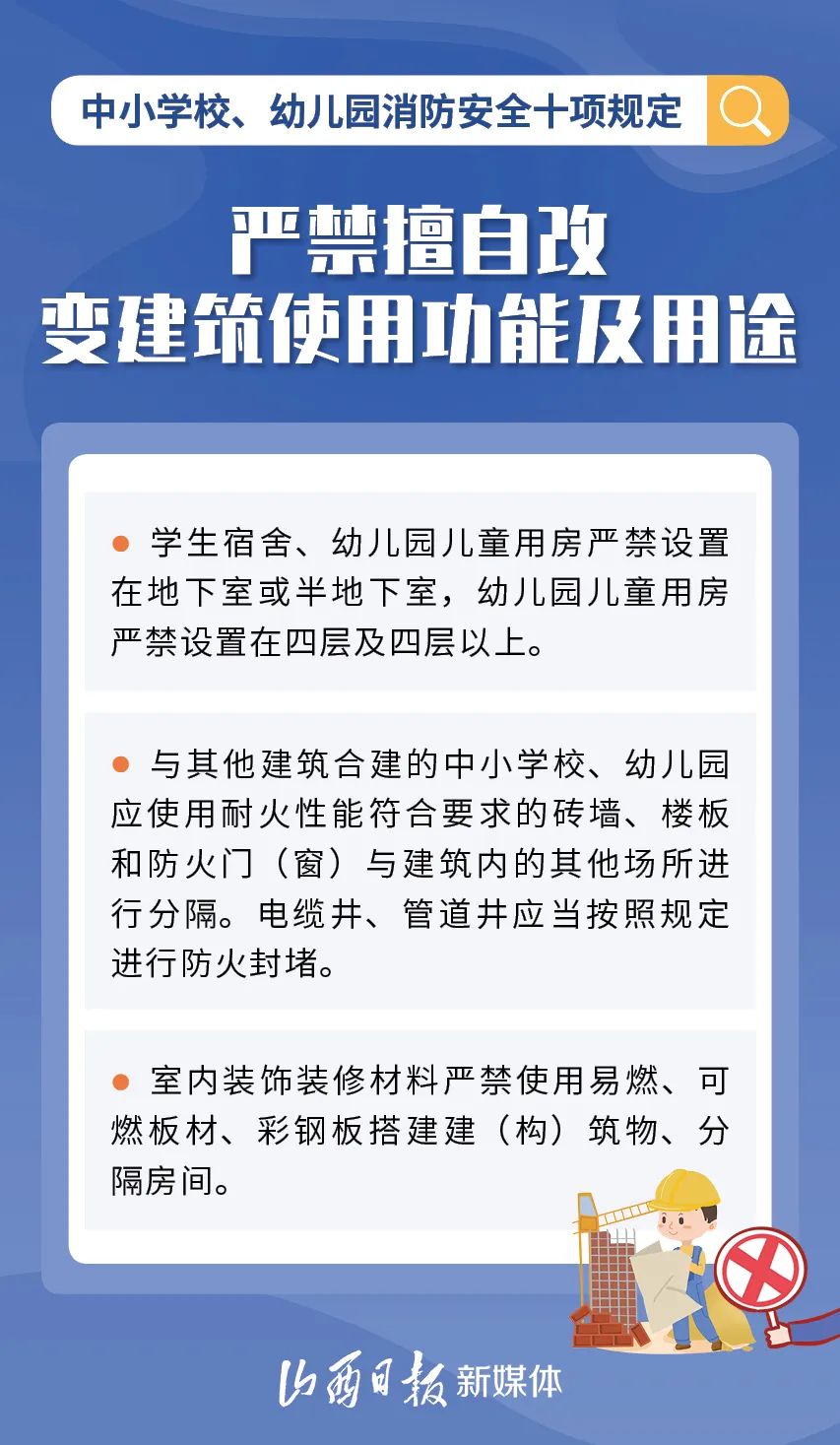 為加強中小學校、幼兒園消防安全管理,近日,教育部、國家消防救援局研究制定了《中小學校、幼兒園消防安全十項規(guī)定》,具體規(guī)定內(nèi)容如下。