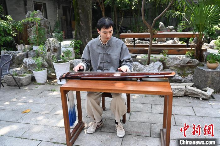 圖為古琴教師高廷鑫在江蘇揚(yáng)州仁豐里歷史文化街區(qū)的永樂琴坊彈奏古琴。國(guó)璇 攝