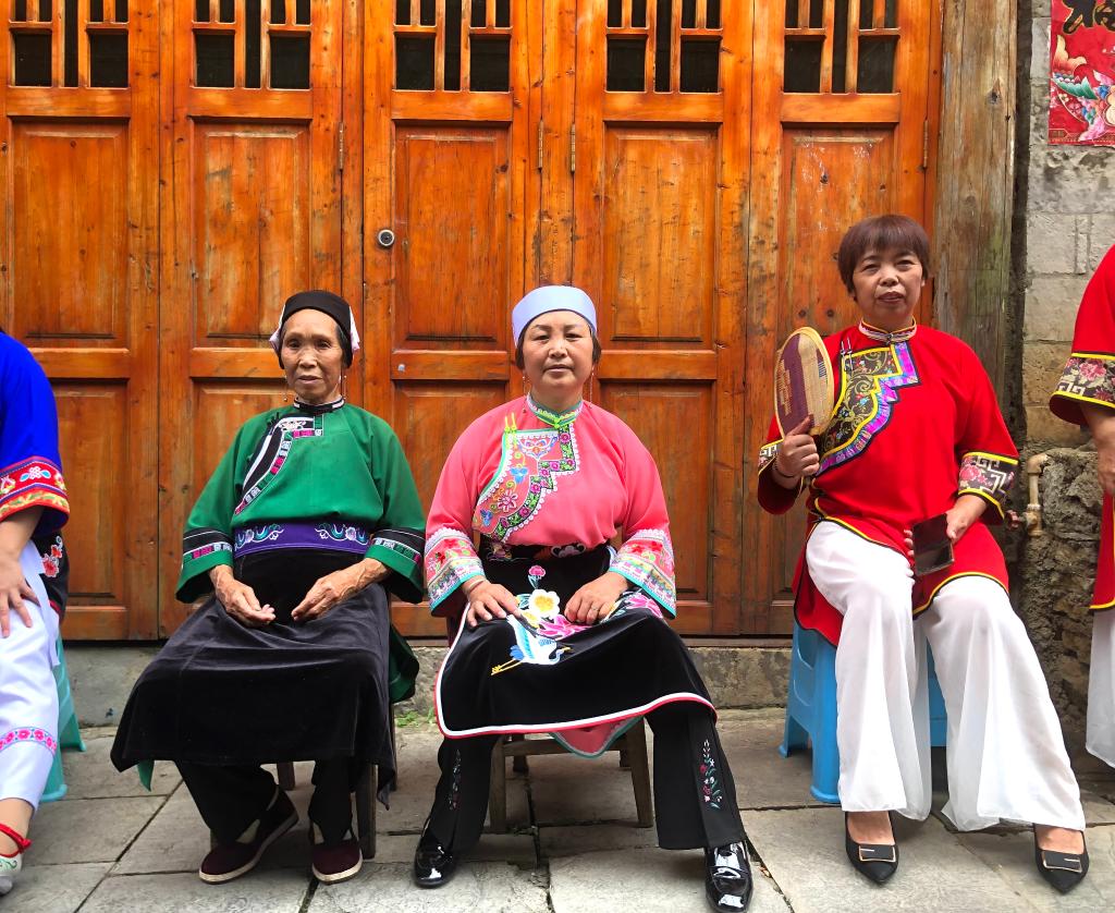舊州古鎮(zhèn)婦女穿著傳統(tǒng)服飾鳳陽漢裝。新華社記者 李凡 攝