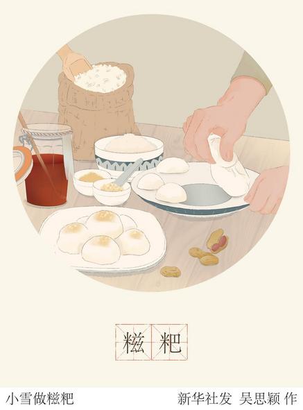 小雪輕揚(yáng),銀裝初上,冬天的景致格外美麗,這一時(shí)節(jié)的民俗活動(dòng)也是豐富多樣的。華東師范大學(xué)民俗學(xué)研究所教授田兆元介紹,比如吃糍粑、腌臘肉、釀小雪酒等。“其中,吃糍粑,是源于春秋戰(zhàn)國(guó)時(shí)期的風(fēng)俗,相傳伍子胥在建城時(shí)將糯米蒸熟壓制成磚塊,然后放冷,既可以當(dāng)城墻基石,又能抵御糧荒,后來(lái)就成了南方地區(qū)一項(xiàng)民俗?!?/p>
