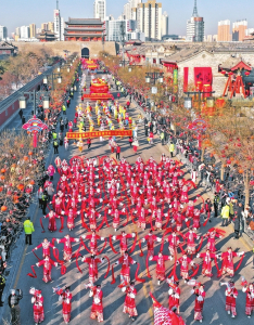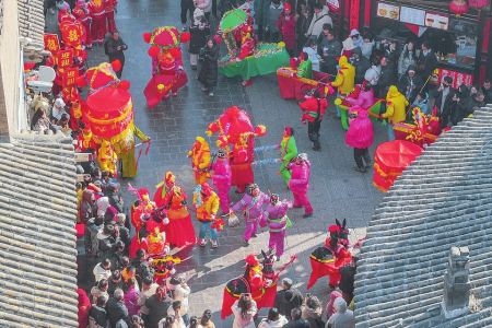 2月9日,民間藝人在平遙古城內表演傳統(tǒng)民俗社火,喜迎元宵佳節(jié)。梁生仁攝