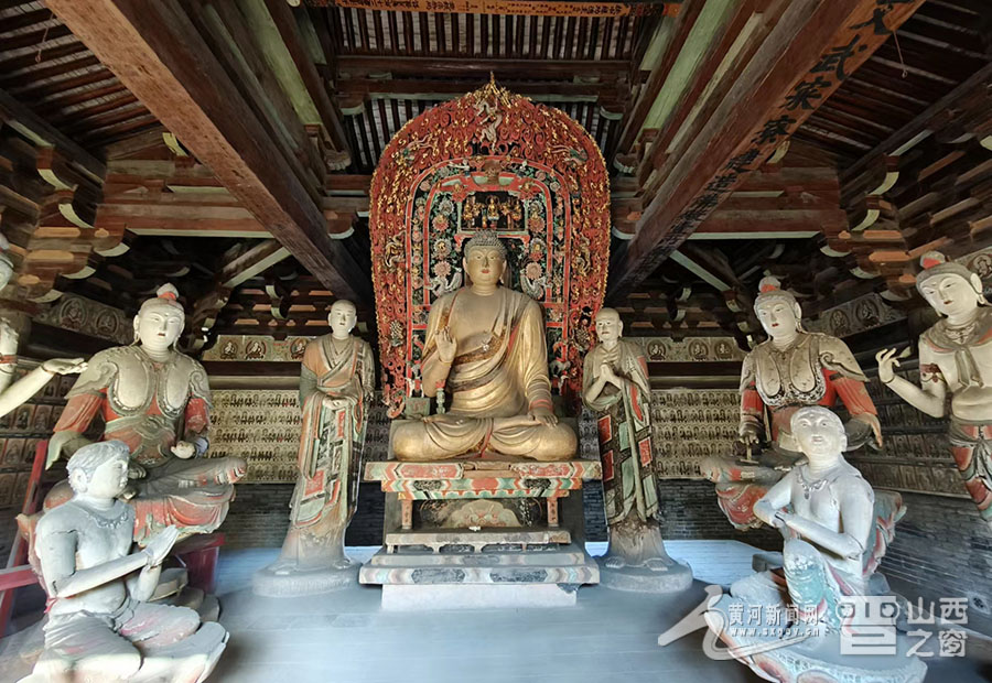 鎮(zhèn)國寺和雙林寺都是平遙縣內(nèi)世界文化遺產(chǎn)的重要組成部分。鎮(zhèn)國寺位于平遙縣東北的郝洞村,初名“京城寺”,明嘉靖時改稱“鎮(zhèn)國寺”,現(xiàn)存寺院共有兩進(jìn)院落,坐北朝南,從前至后沿中軸線建有天王殿樓等主要建筑。其中,位于寺院中部的萬佛殿建于北漢年間,是中國現(xiàn)存最古老的木結(jié)構(gòu)建筑之一,被稱為“千年瑰寶”,是中國佛教寺院中現(xiàn)存的三處五代建筑之一,其中的彩塑,更是全國寺廟殿宇中保存至今的唯一五代作品。