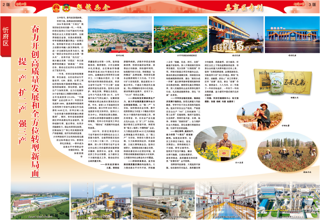 一年來(lái),忻府區(qū)堅(jiān)持統(tǒng)籌兼顧、承壓奮進(jìn),全區(qū)經(jīng)濟(jì)運(yùn)行平穩(wěn)有序,GDP、固投、社零三項(xiàng)經(jīng)濟(jì)指標(biāo)絕對(duì)值繼續(xù)領(lǐng)跑全市。堅(jiān)持因地制宜、深化轉(zhuǎn)型,新質(zhì)生產(chǎn)力加快發(fā)展,全力以赴做好24個(gè)省市重點(diǎn)工程服務(wù)保障工作,全年完成投資123.15%,“專(zhuān)精特新”企業(yè)達(dá)到18戶(hù),年度任務(wù)完成率100%,溫泉康養(yǎng)和資源再生利用兩個(gè)市級(jí)專(zhuān)業(yè)鎮(zhèn)全年完成營(yíng)收14.68億元,忻州古城入選“全省非遺與旅游深度融合典型案例”,頓村、奇村省級(jí)旅游度假區(qū)評(píng)審成績(jī)名列全省前茅。堅(jiān)持創(chuàng)新引領(lǐng)、重點(diǎn)帶動(dòng),改革步伐穩(wěn)健有力,國(guó)企改革深化拓展,區(qū)糧油加工廠等公司實(shí)現(xiàn)國(guó)有資產(chǎn)保值增值,醫(yī)療改革成效顯著,鄉(xiāng)村兩級(jí)醫(yī)療衛(wèi)生機(jī)構(gòu)標(biāo)準(zhǔn)化建設(shè)達(dá)標(biāo)率超過(guò)95%,教育改革扎實(shí)推進(jìn),一職中成為省高水平中等職業(yè)學(xué)校建設(shè)單位,整體教育教學(xué)質(zhì)量穩(wěn)居全市第一方陣。堅(jiān)持穩(wěn)糧保供、提質(zhì)增效,鄉(xiāng)村全面振興扎實(shí)推進(jìn),全區(qū)糧食作物播種面積完成2024年指標(biāo)任務(wù)的105%,鹽堿地綜合利用項(xiàng)目全面開(kāi)工,5個(gè)精品示范村、22個(gè)提檔升級(jí)村取得階段性成效,榮獲全省學(xué)習(xí)運(yùn)用“千萬(wàn)工程”經(jīng)驗(yàn)成效明顯先進(jìn)市縣。堅(jiān)持生態(tài)保護(hù)、綠色發(fā)展,厚植生態(tài)底色,全年大氣優(yōu)良天數(shù)281天,全年重污染天氣同比減少,定襄橋國(guó)考斷面水質(zhì)達(dá)地表水Ⅲ級(jí)優(yōu)良水質(zhì),中央、省級(jí)2.8萬(wàn)畝造林任務(wù)全部完成,南云中河EOD項(xiàng)目入選國(guó)家示范支持項(xiàng)目。堅(jiān)持以人民為中心、積極回應(yīng)群眾期盼,人民群眾獲得感幸福感安全感持續(xù)增強(qiáng),老舊小區(qū)改造完工率達(dá)91%,“煤改電”鞏固提升改造成效顯著。