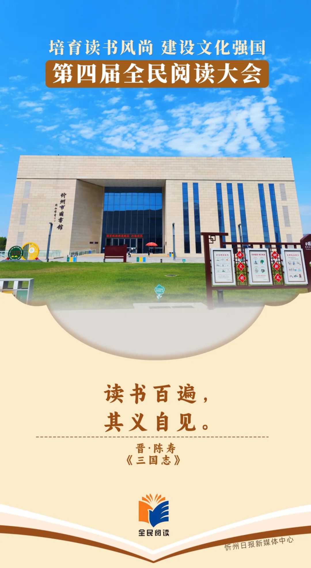 第四屆全民閱讀大會將于4月23日至25日在太原市舉辦。大會由中共中央宣傳部、中共山西省委、山西省人民政府主辦,以“培育讀書風(fēng)尚 建設(shè)文化強(qiáng)國”為主題,旨在通過全民閱讀構(gòu)筑共有精神家園,提升社會文明程度,為以中國式現(xiàn)代化全面推進(jìn)強(qiáng)國建設(shè)、民族復(fù)興偉業(yè)提供文化滋養(yǎng)和精神力量。
